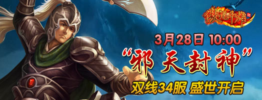 4399傲视千雄将于3月28日震撼开启双线34服“邪天封神”,各路英雄请火速进驻,共同体验万人在线热血竞技的快感!