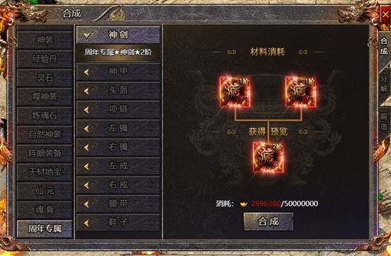 5、周年专属装备可在【合成-周年专属】中合成升级