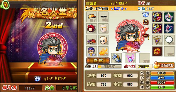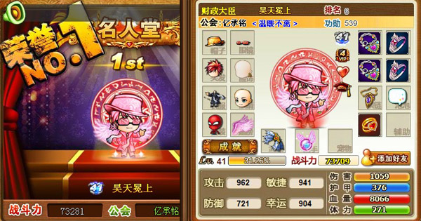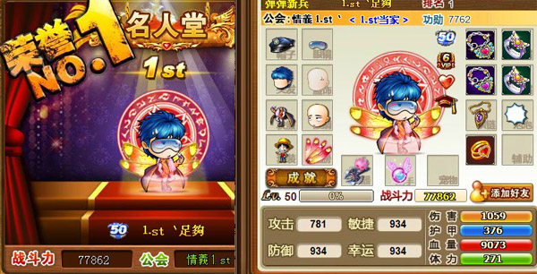 战力突破8万的另一位玩家也来自第九大区,来自有个小村庄的公会。第九大区可谓精英辈出,可堪称人才的摇篮。这两位弹友装备相似,等级分别是50和49。最得意的装备恐怕要数武器、衣服和帽子这三件了。此外,清一色的S伤害LV4,附加孔全部2级也给他们带来巨大的战力增加。