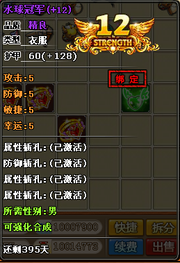 最后,小编要提醒大家,铸金的效果只能维持30天,不能续期,只能再次铸金。而且,被铸金的装备有效期不能低于30天,想一直保持装备黄金状态的弹友们,要注意给自己的装备续期和囤积各种祝福宝珠啊。