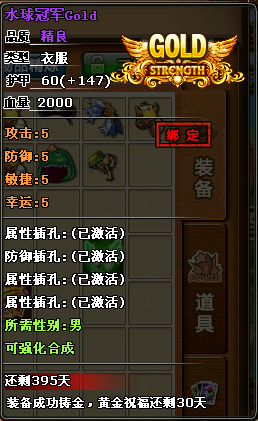 而铸金成功的黄金衣服和黄金帽子,除了会给人物配上炫目的黄金光环之外,每件还会增加2000点血量!