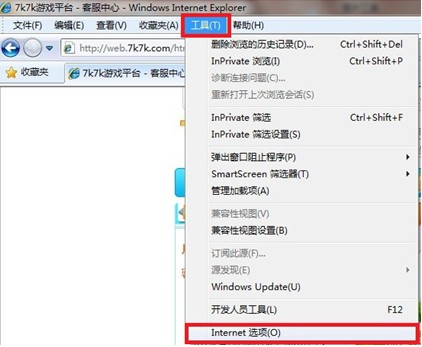 请您打开任意一个网页,点击网页上方的“工具”= 》“Internet选项”;