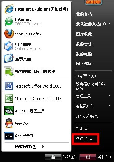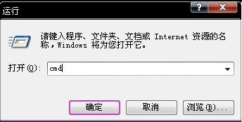 点击“开始”--“运行”--输入cmd--确认