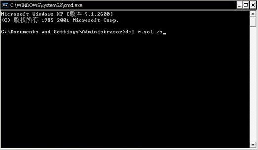 在出来的窗口里复制并粘贴命令del *.sol /s