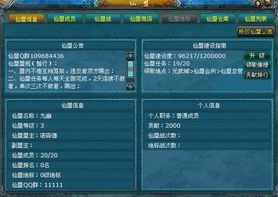 荣誉,人气和财富三个基本因素是仙盟崛起的重要基础,构建联盟时,盟主可以选择精干这担任副盟主,副盟主分首席副盟主和次席副盟主,他们分别管理仙盟中一项基本工作。盟主和副盟主有权邀请经营加入,有权审批申请有权管理仓库,提升仙盟等级,撰写仙盟公告,报名仙盟战等等事宜。
