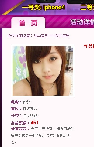 除此以外,秋秋美女选择了那些在她修真生涯中很有代表性的地点,到底是代表着巧遇、一段感情、一段荣耀、一段感动,还是别的什么故事的地点呢?秋秋笑而不语,说如果她有时间和机会的话,会在复赛和决赛中曝光更多的修真故事,大家千万别忘了来4399凡人修真官网和凡人修真官方论坛投票、给秋秋美女精彩评论哦,精彩点评和参赛都有iPhone 4、iPad等圣诞新年大礼在等着你!