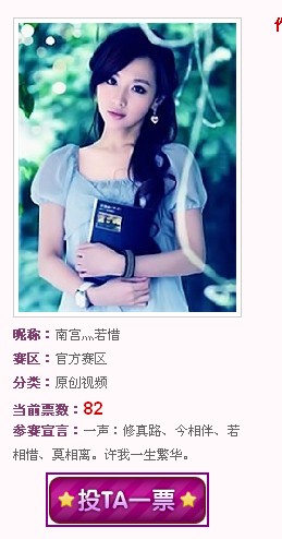 秋秋:谢谢你们的支持,给我一次机会,我必将还您们以夺目的光彩。