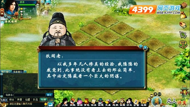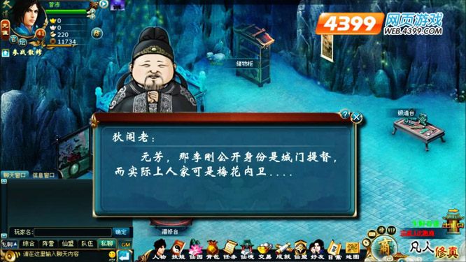 天界谜案,重重迷雾,悬疑爆笑,4399凡人修真仙园药园冬虫草大盗案的背后隐藏着怎样神奇的内幕?“这里的水很难呐!”大唐第一神探狄仁杰、千牛卫中郎将李元芳惊现凡人修真,受天界神兵天将之邀,前来源武城调查。真假李元芳,万妖窟、通天峰上天入地急寻真凶,声东击西上演真实的谎言!2011修真网页游戏最佳剧情MV,惊现4399凡人修真音乐达人复赛巾帼英杰之手!神秘、惊栗、爆笑的剧情,紧张、紧凑的解说,犹抱琵琶半遮面,笔者也只能稍作剧透,欲穷全情,还得来4399凡人修真官方论坛关注复赛巾帼“秋秋”!