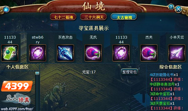 罡、天伤宝石的获得途径,唯有仙境里的太古秘境才能获得。越是难以获得,越是表示这些宝石的珍贵!我们对世界上珍稀的东西都不知疲倦的追求。4399凡人修真的世界里,对宝石的追求,也是没有止境的。只要佩戴天罡、天伤宝石,就能招来天神附身。在PK的世界里,你就是王者之王!