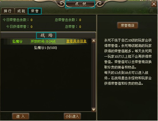 2、杀死任何玩家可获得2点荣誉,杀死同一个玩家超过10次将不能获得荣誉(与在战场外面的次数不会累加);