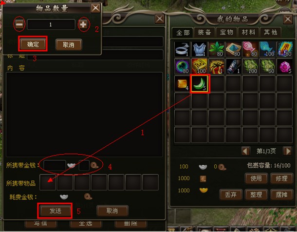 在发信中附带发送物品和金钱是大荒游侠的特色。