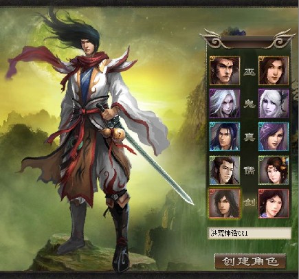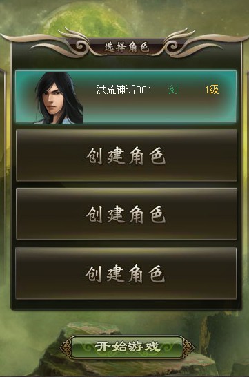 ③ 完成创建后会返回人物选择界面,选中角色框里的人物,点击“开始游戏”图标就可以进入奇妙的洪荒世界,开始我们的洪荒之旅了。