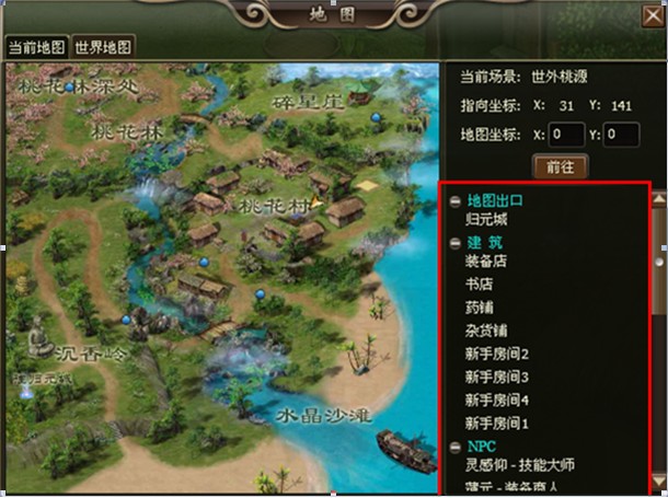 2.双击“当前地图”右边的“地图出口”、“建筑”、“NPC”,可以自动寻路(图4)。