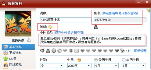 签名内容:最近在玩《洪荒神话》,打开hhsh1.my4399.com就能玩,洪荒有你更精彩。