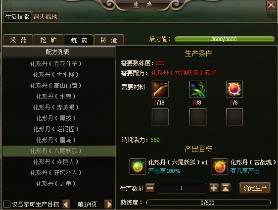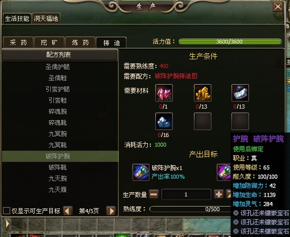 采药和挖矿会消耗活力值。每隔15分钟系统自动回复4399的活力值。15级玩家拥有1000活力值。活力值上限随玩家的等级增加而增加。炼药不仅需要原材料,还需要学习4399的药方。药方可在主城【炼丹房】购买,高级药方会有高级副本等途径掉落;铸造需要材料,还需要学习4399的铸造图。铸造图可在主城【铸造坊】购买,高级铸造图会有高级副本等途径掉落。