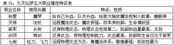 九天仙梦五大职业属性特征表
