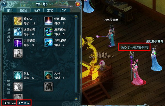 技能系统的革新也是九天仙梦一个重要的游戏特色,在凌风城西北部,可以看到凌风殿两旁耸立着两座神圣的仙楼,按照古代文右武左的习惯分别开设两个讲武堂,右边唤星庭是魔法系职业铃星职业和天殇职业的技能学习场所。