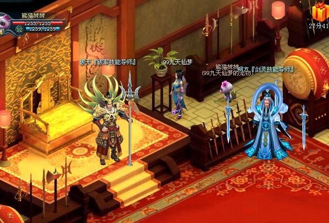 左边的讲武堂则是物理攻击职业学习技能的去处,破军职业,七煞职业和剑灵职业需要在这里进行短期修习,每个职业4399的技能NPC都有本职业的技能书出售。