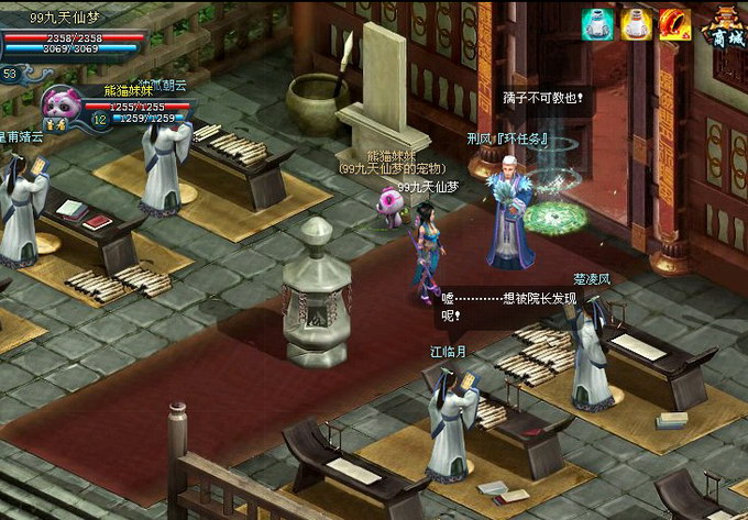 新增帮会聚义厅,九天仙梦终于打破WEB游戏表格式,对话框式的帮会模式,游戏中新曾面积十分庞大的帮会聚义厅。在这里,帮众,各个堂主,都将在帮主的号令下进行帮会活动。聚义厅里还分有文职书画展,账房,书桌等多种设备,而另一边的练武场上也匠心独运的摆放着各种兵器。