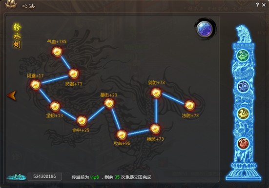 B.点击心法界面对应的龙珠可进行心法修炼,修炼需要按照一定次序依次修炼