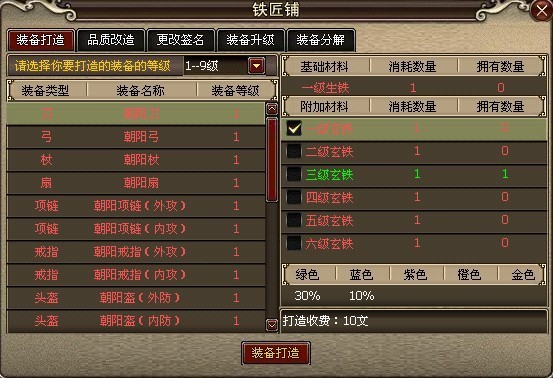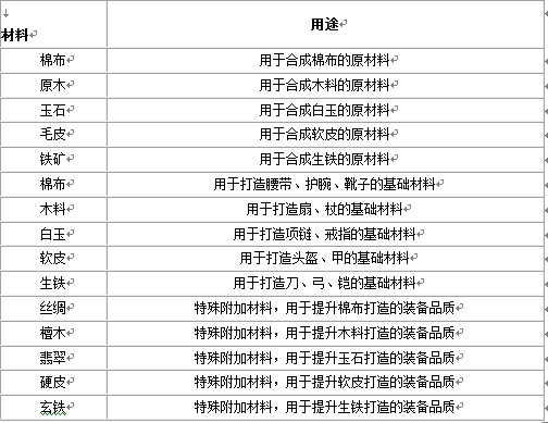 一、装备打造以打造1-9级装备为例(所需要材料参照上面表格)
