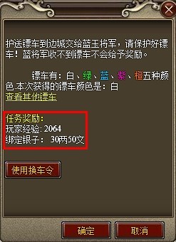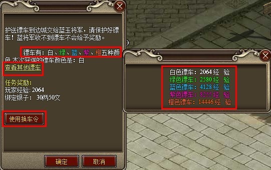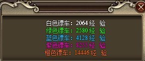 不同颜色的镖车,不同的玩家等级,获得的奖励不同
