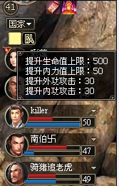 1)被队友五行属性相生,加生命值上限,内力值上限。