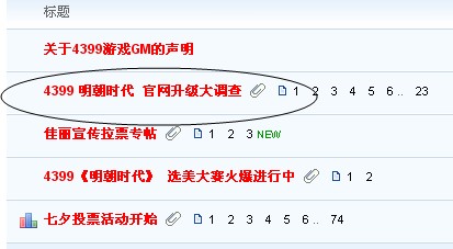 ② 选择“标题”板块的【明朝时代 官网升级大调查】进入即可发帖参与活动。