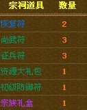 呵呵,遥远的“宗族战”开始对我招手了,二话不说就加进了他们“宗族”。我这个70都不够的新手菜鸟一进入他们“宗族”就开始对着仓库的“存货”流口水。