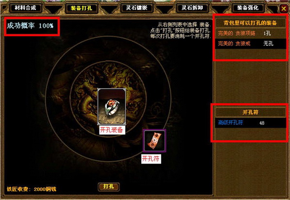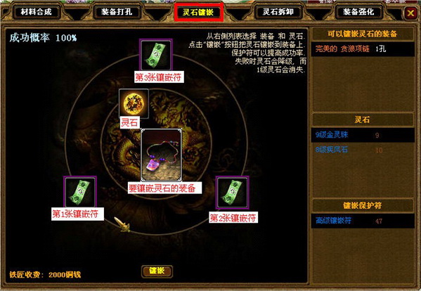 2)使用镶嵌符可以提高成功率,每次可使用1~3个;