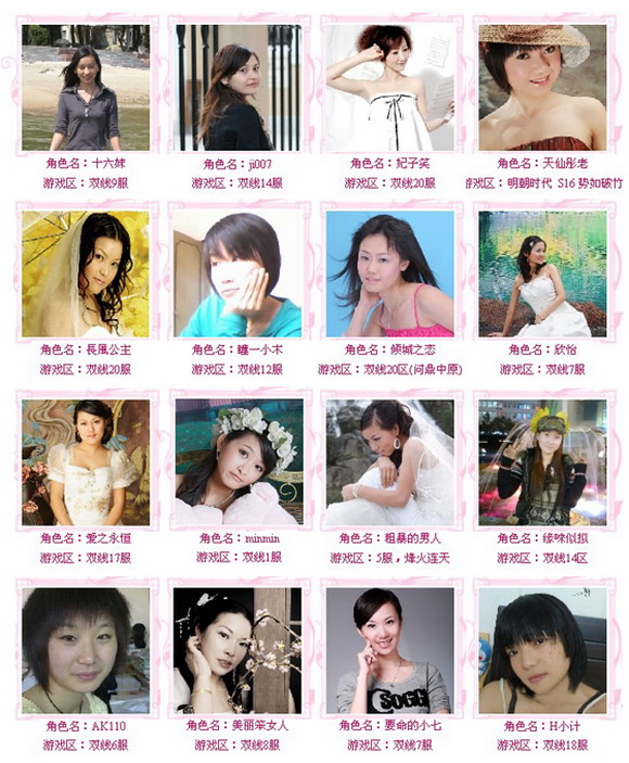 以上16个MM是进入前20名的明朝佳丽,不愧是咱们4399明朝时代的佳丽,真是美不胜收哇!!好了,接下来让我揭露一下佳丽们大大大大的丰收吧: