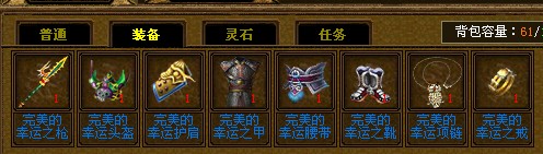 “幸运套装”是明朝时代的一套代表性装备,它不仅仅是在同期装备中防御最高,成为肉盾的首选,而且是因为其吉利的装备名称,你今天要是打到了一件“幸运套装”的部件,感觉会给自己带来一天的幸运。“幸运套装”就这样逐渐地淡出玩家们追求强大装备的范畴,转而进入玩家们的精神领域,成为玩家心目中的吉祥道具。