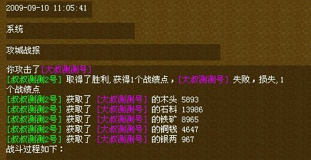 呵呵,战斗结束以后,系统会以信件的形式提示玩家的战斗结果,胜利的一方会得到会得到1点的战绩点,还会得到防守方部分的储备资源哦!是不是牵动了某些有小猥琐心态的玩家呢?所谓“人在江湖混,哪有不挨刀”,明朝时代可是很危险的~~