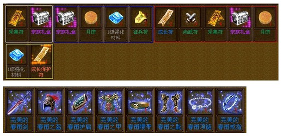 擒获奖励:成长符x2、尚武符x3、采集符x4、月饼x1、宗族礼盒x1,同时还4399获得1级强化材料、成长保护符、春雨装备哦!