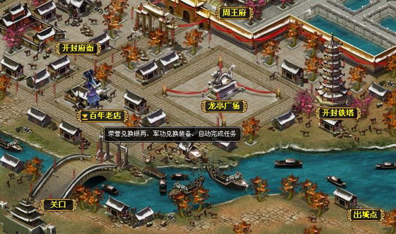 另外,开封府的百年老店是大家最熟悉的一个兑换市场了。这里能兑换军功,荣誉,和功勋以及未来可能会推出的茱萸。军功可以兑换装备,强者套,侠客套,豪杰套以及武圣套;军功可以通过完成每天的军功任务来完成,每天增加60点军功,另外玩家还可以在自由交易市场购买军功令来获得军功。