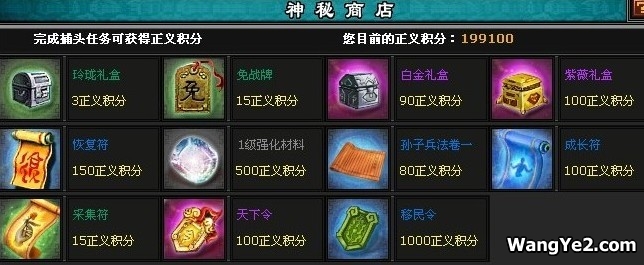 正义举动感动了唐伯虎,就可以获得100正义积分的奖励。100正义积分可以到神秘商店换取【白金礼盒】、【紫薇礼盒】,打开【白金礼盒】4399获得七煞装备,打开【紫薇礼盒】4399获得破军装备和生肖礼盒。别以为只有护送秋香才可以获得正义积分,只要你有正义感完成“捕头任务”同样能获得正义积分。