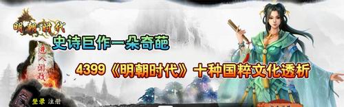 魅力十种国粹文化在4399《明朝时代》游戏中,将领,战斗,装备,道具,游戏内容等等多个方面都潜移默化的渗入了各种国粹文化,在国内一年多的火爆运营证实了国粹文化魅力仍不可估量,明朝时代是否成功冲出海湾?让我们关注4399游戏平台吧,除了国粹经典明朝时代,4399旗下热血三国、完美农场、凡人修真、盘龙神墓记、弹弹堂、射雕传、飞天西游、西游传、商业大亨、口袋精灵 、魔力学堂、墨攻天下等二十多款游戏也给不同玩家开启知识和信息的视窗。