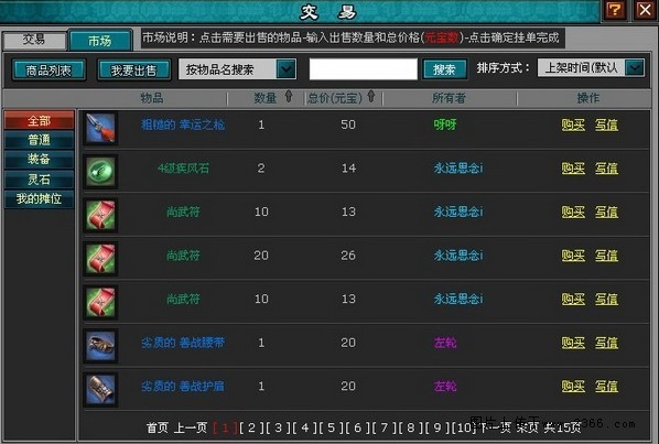 如果想要挂单,只要你达到20级,就可以点击4399《明朝时代》“市场中的“我要出售”,左边出现的是背包中的可出售物品,点击“添加”,可添加出售物品,输入价格,点击“确定”,挂单完成。所有不绑定的物品都可以挂,但是上限10单,挂单的有效期是7天,7天后单就会自动撤下,保存在”我要出售”的列表中,我们可以选择撤销或者续期。