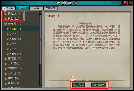 藏书分为“人物传记”、“地方志”、“杂记”以及“明朝宝典”等。每种书籍都蕴含着丰富的内涵,我们可以在地方志中看到天龙山、棋盘山、齐长城、云冈石窟等等的介绍。在玩4399《明朝时代》的的同时,还能体验到我大明王朝的物华天宝,人杰地灵呢!