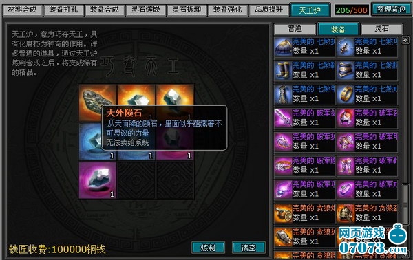 那么神秘的天外陨石到底有什么用处呢?明确的说就是,天外陨石和天宫炉的使用是走向极品套装的一条密径。使用天外陨石加10个军功令在天工炉中100%炼制出杀破狼碎片。每次的炼制都是4399出现杀破狼套装碎片中的一个,8个碎片就可以合成获得一个装备。有点难,但是套装是不绑定的,所以可以交易。平均来看当你有8个碎片时,也就是说很多人都有碎片了,所以出现全套的可能性是很大的。当然至于你能不能从其他玩家手里收集或交换到你需要的碎片就看你的能力了。