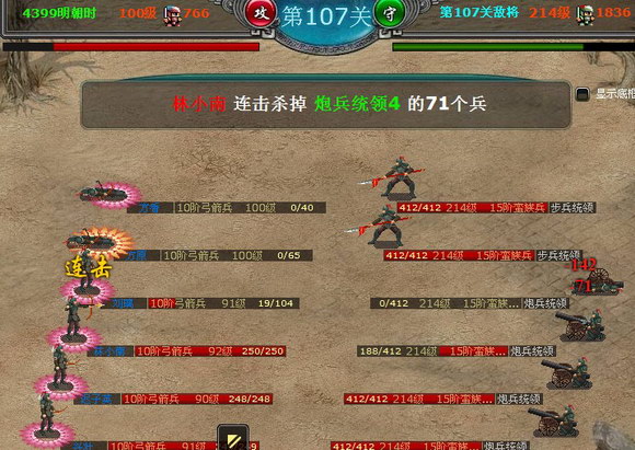 4399明朝时代战斗系统是在不断优化中完善起来的,以规模为标准,游戏可分为个人战斗,宗族战斗,国战以及全服围攻战等多种,这些战斗中包含了PVP战斗模式和PVC战斗模式,是游戏史上战斗模式的集成者。