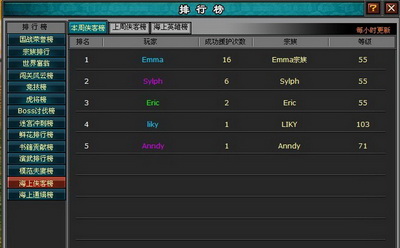 护航和援护,在航海界时可以攻击敌国的船只,但是击毁船只次数越高,越容易成为通缉榜上的风云人物。不过选择使用海盗面具可以隐藏自己的信息对船只进行攻击而且也不会在“通缉榜”上留名。当本族或者本国的船只受到攻击,玩家可以进行宗族护卫和国家援护两种模式,可对攻击者进行攻击,以保护自己宗族的船只或援护本国其它宗族的船只,玩家对本国船只进行援护可以缩短两次攻击之间等待的时间。