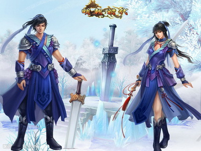 与万历不同的是,作为永乐的男女主角,一身侠客蓝装造型,依然的帅气与美丽中却多了点古典江湖的韵味。方刀长剑,盔甲披肩,果敢利落中又透着江湖儿女的柔情,放荡不羁中又传承着古典的气息,最是让人玩味的一对。