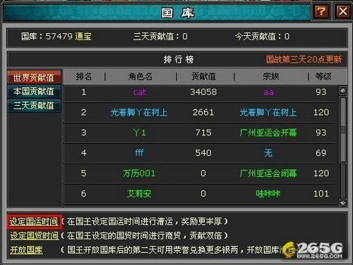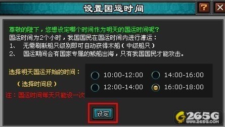 全新的漕运中还有国家漕运模式,国家漕运可由皇帝或国王发起。国王可在提前一天设定国家漕运时间,国运将持续2个小时。在国运期间即使不刷新船只级别也自动获得木船(中级船只),而且会有国家专属的贼船出海,国家专属贼船名字使用国家的颜色,只有国运该国的玩家才能攻击。国家专属的贼船比普通的贼船等级更高,攻击贼船和击毁贼船的奖励更加丰厚。故在国运时间,本国国民有更多机会打沉贼船获得丰厚奖励。