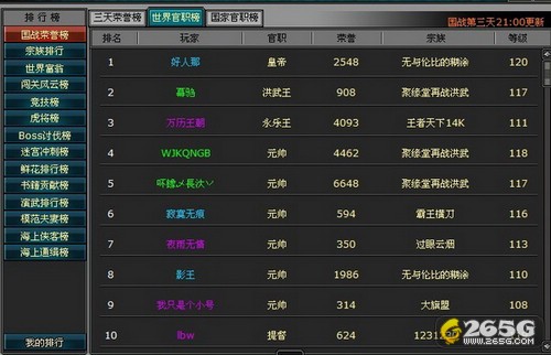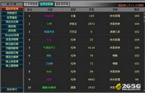 一国之强弱,主要还是看国之将相与民之团结与否,从世界实力来看,洪武的实力并不是很强,但是却能以摧木之势把另外两个国家打得无还手之力,只要是由于其人多,虽没有最强的,但是也有众多高端的大将,而且各阶层玩家都对国战积极参与!每到国战之时,蜂拥而至的洪武人,挂机都可以挂死你一个国家!