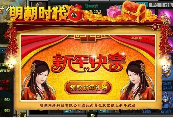 给力新春,明朝时代从玩家穿越时刻开始就为大家开放各种大礼包,新手大礼包,投票大礼包,节日大礼包如今,在腊月和正月两个古代备战的关键时期又为玩家们放出战神礼包,明朝至尊礼包以及春节系列礼包等,这些礼包不仅给玩家于春节期间打造自己的强悍装备创造了条件,同时,温馨礼包,浪漫礼包也为让巾帼英雄们留下美好的新春印象创造了更多机会。