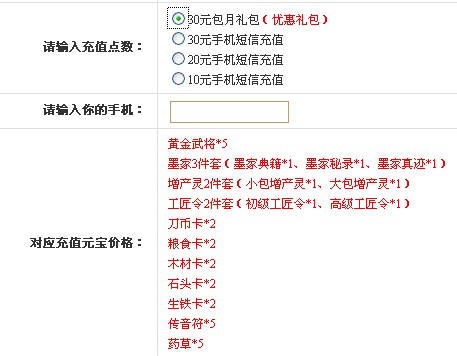 注:手机充值礼包,充值成功后只有优惠的大礼包,没有充值元宝。包月礼包的自动续费的,如果有玩家说礼包包月收到续费信息,但是没有收到4399道具,请及时联系充值客服qq:1030966678