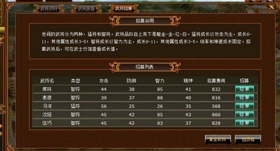 关于武将,只介绍一下黄金武将和暗金武将,其他武将就不用介绍了,做任务就有”黄金将领“刷新卷了,黄金武将是主要属性项80-90成长值为9。暗金武将是主要属性项88-100成长值为10/11。比如说我招募的一个武将是智将,那么他智力就是89每升级一级的成长值为10那么他就是暗金武将了。我见过最牛X的一个是99属性11成长的一个暗金将领,太犀利了。