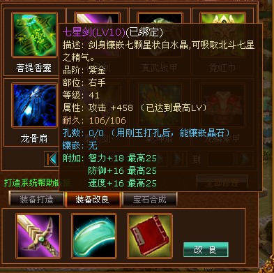 。因为李牧战刀是40级的套装武器,要打造成50级的套装武器,需要41级或46级的紫金LV10武器加上50的右手工艺书。现在开始准备材料,先打造出一把41级或46级LV10的紫金武器,我准备的是41级的七星剑