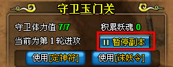 在玉门关副本进行中,可点击主界面上的【暂停副本】,使得副本暂停。